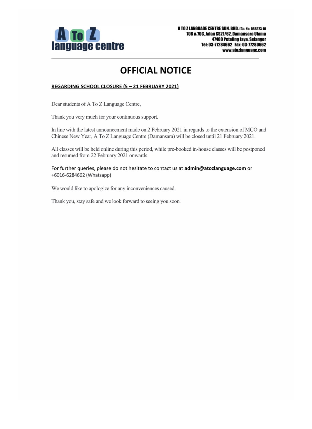 © 2004-2025 A TO Z LANGUAGE CENTRE SDN. BHD (Registration No.200201000710 (568373-D)). 🇲🇾