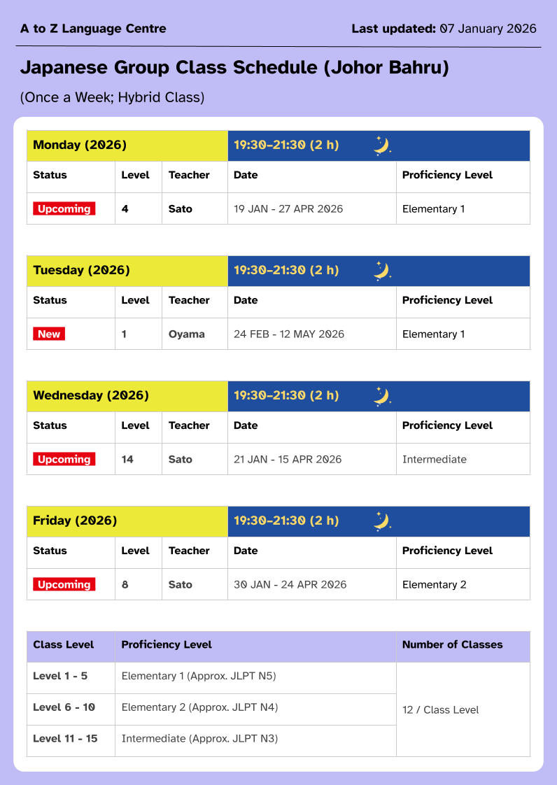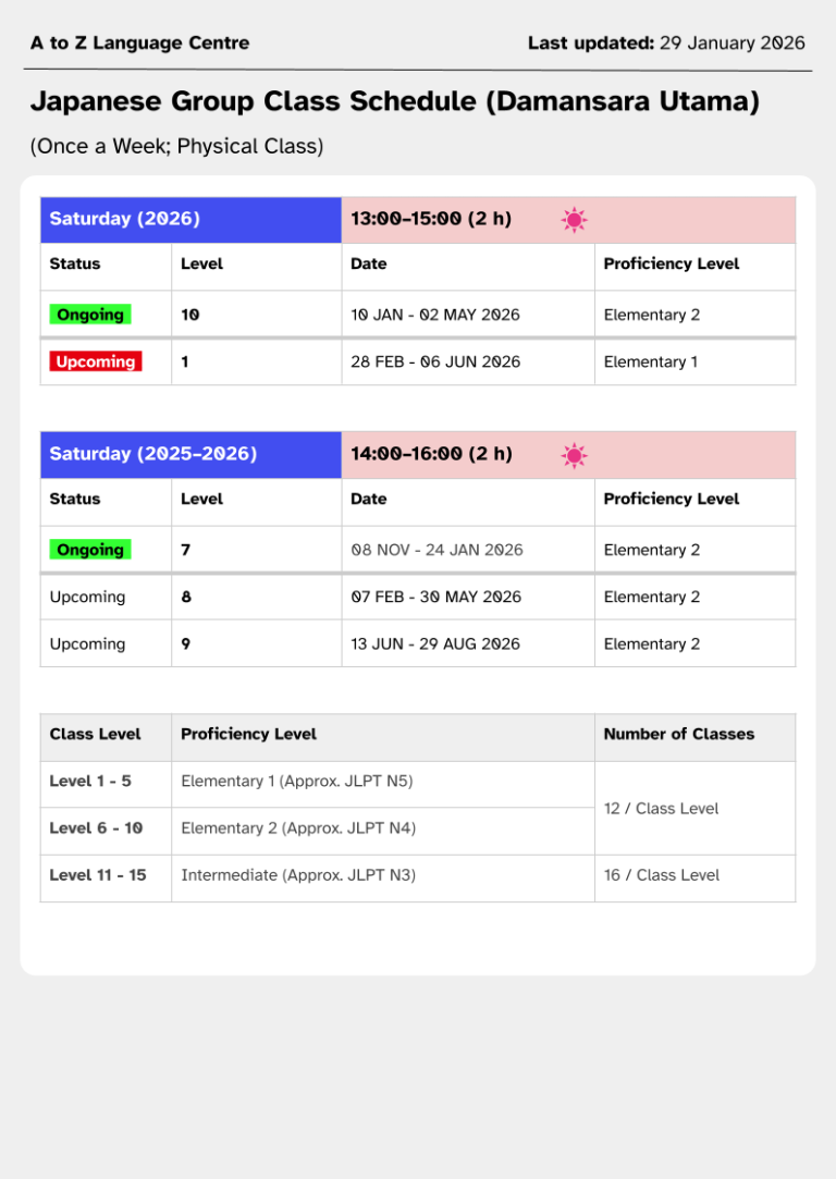 Japanese Language Class: Damansara Utama