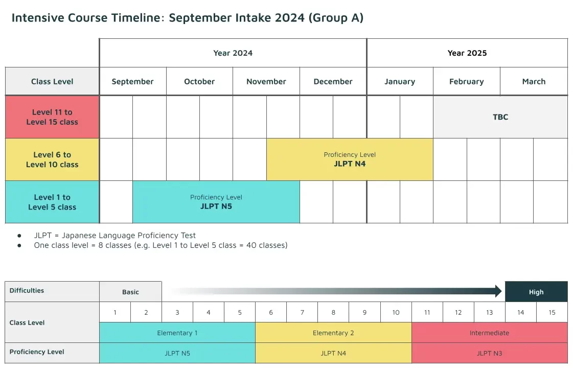 The term “class levels” refers to the different levels offered in our classes while “JLPT levels” refers to the proficiency level of Japanese language measured by JLPT. (Japanese Language Proficiency Test)
