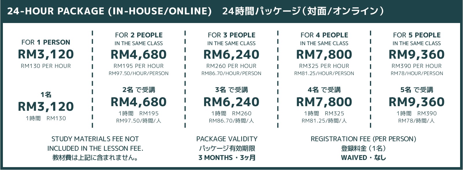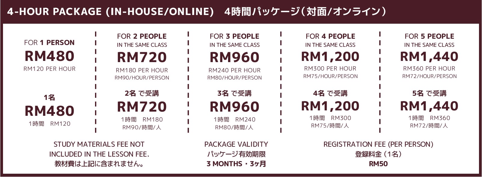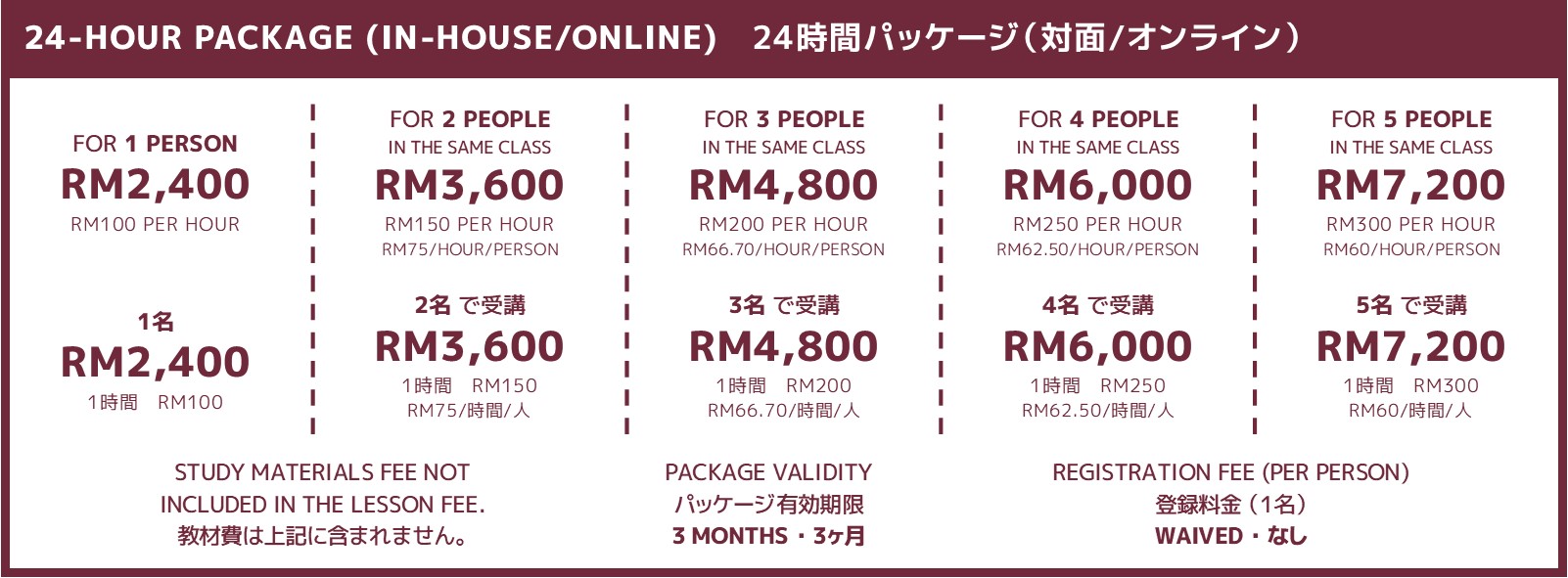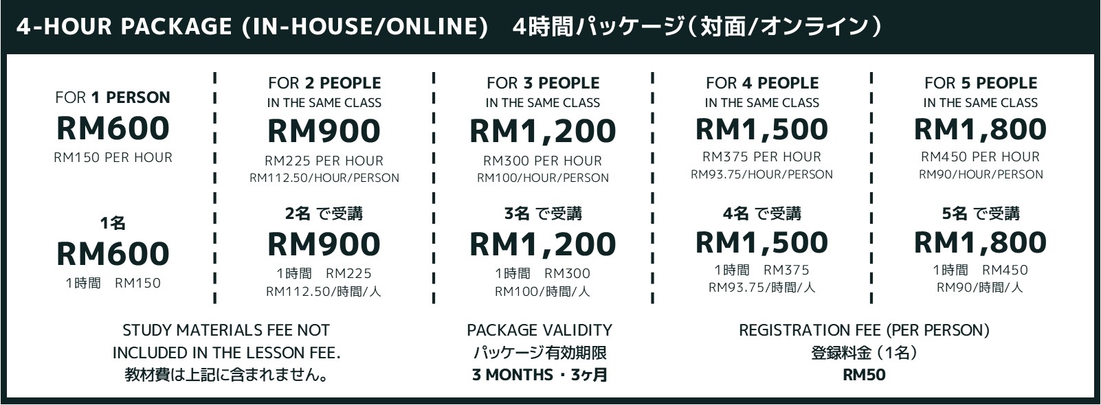 Thank you for the continuous support over the years. Kindly be informed that there will be a revision in the fees for private classes effective 1 June 2022. Existing students may continue paying the old rate until 31 October 2022.